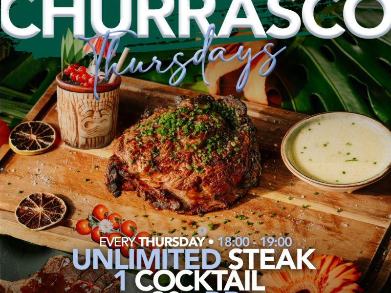 Every Thursday you can enjoy Unlimited Steak & Fries including 1 Cocktail for 1 hour long, starting from 18:00.